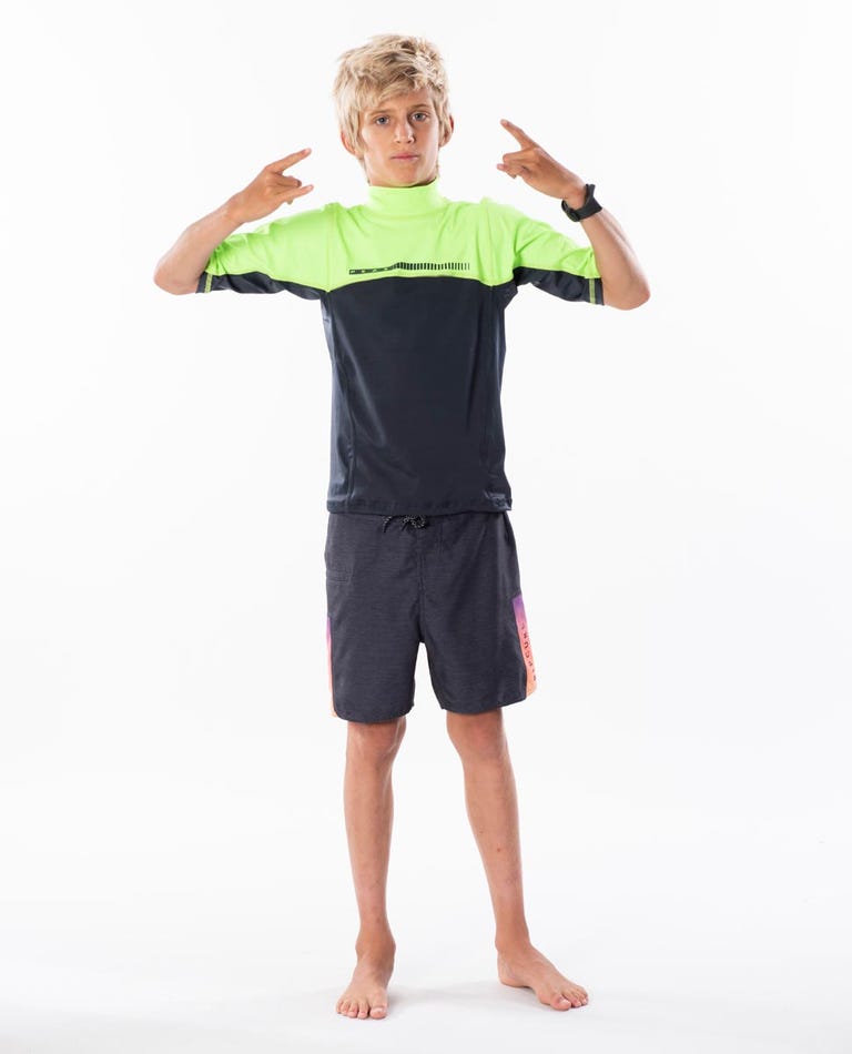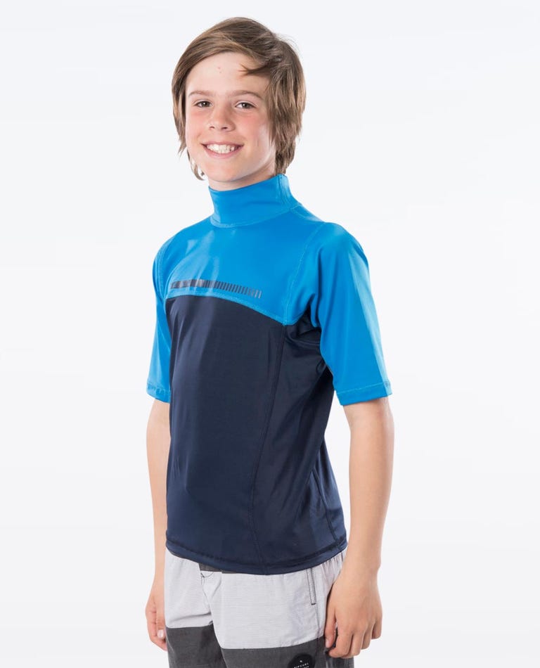 The Boys Short Sleeve UV Tee is a great rash vest for a long day in the sun or water, made using a durable chlorine friendly material, meaning it will keep its structure, shape and performance even when worn in chlorine-filled swimming pools.